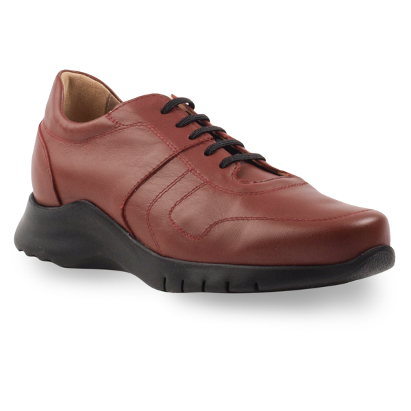 Bamba muy cómoda de ancho 16. Exterior de piel y cierre con cordones. Contrafuerte en la parte del talón adaptado a cualquier tipo de plantilla. Suela de Goma EVA con 3 cm de altura ideal para una pisada amortiguadora totalmente estable. Este fabricante tiene el tallaje grande, se recomienda escoger un número menos del que usted calza.