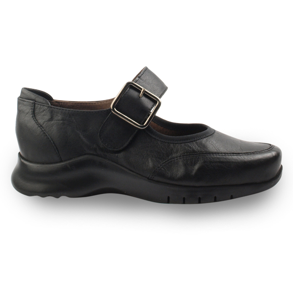Zapato muy cómodo de ancho 20. Exterior de piel natural y cierre con velcro en forma de pulsera. Contrafuerte en la parte del talón adaptado a cualquier tipo de plantilla. Suela de Goma EVA con 3 cm de altura ideal para una pisada amortiguadora totalmente estable. Este fabricante tiene el tallaje grande, se recomienda escoger un número menos del que usted calza.